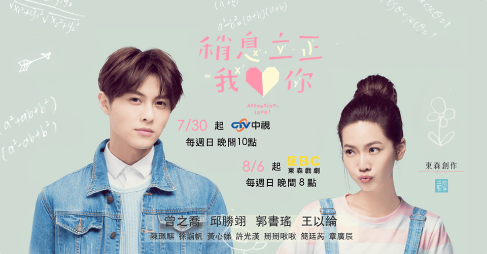 稍息立正我愛你(台劇):劇情簡介&人物介紹&觀劇心得(更新到第15集最終回) 2017年東森電視自製戲劇系列之第七部作品《稍息立正我愛你》,由王子、曾之喬、以綸、郭書瑤領銜主演。2016年10月7日開鏡,10月12日開拍,中視主頻於2017年7月30日起每週日晚上10點首播,LINE TV於當晚起每週日晚上11點半網路首播,東森戲劇台…