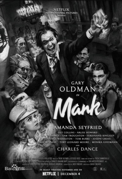 曼克(美國電影):劇情簡介&人物介紹 美國電影《曼克》是由大衛·芬奇執導,加里‧奧德曼主演的歷史題材電影,本片是93屆奧斯卡金像獎入圍的最大贏家,總計獲得最佳影片、最佳導演、最佳男主角、最佳女配角、最佳攝影…等十項獎項入圍,劇情講述編劇赫爾曼.J.曼凱維奇創作《公民凱恩》劇本的過程,以及其後該劇本對其生活…